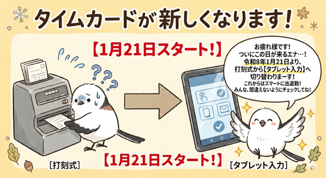 創業以来出退勤の記録は打刻式でやってきましたが、この度タブレット入力に切り替えることとなりました。