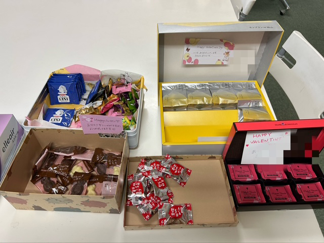 普段は時々お土産が置いてあることはありますが、バレンタインに合わせて何名も用意してくれるところは、いつの間にか作られた社風なんだと思います。